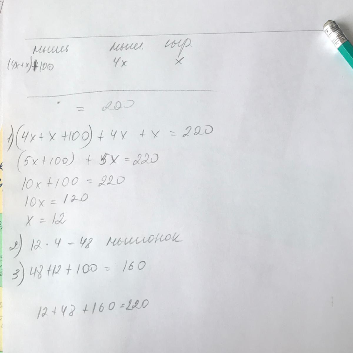 Мышь весит на 100г больше, чем мышонок и сыр вместе взятые.