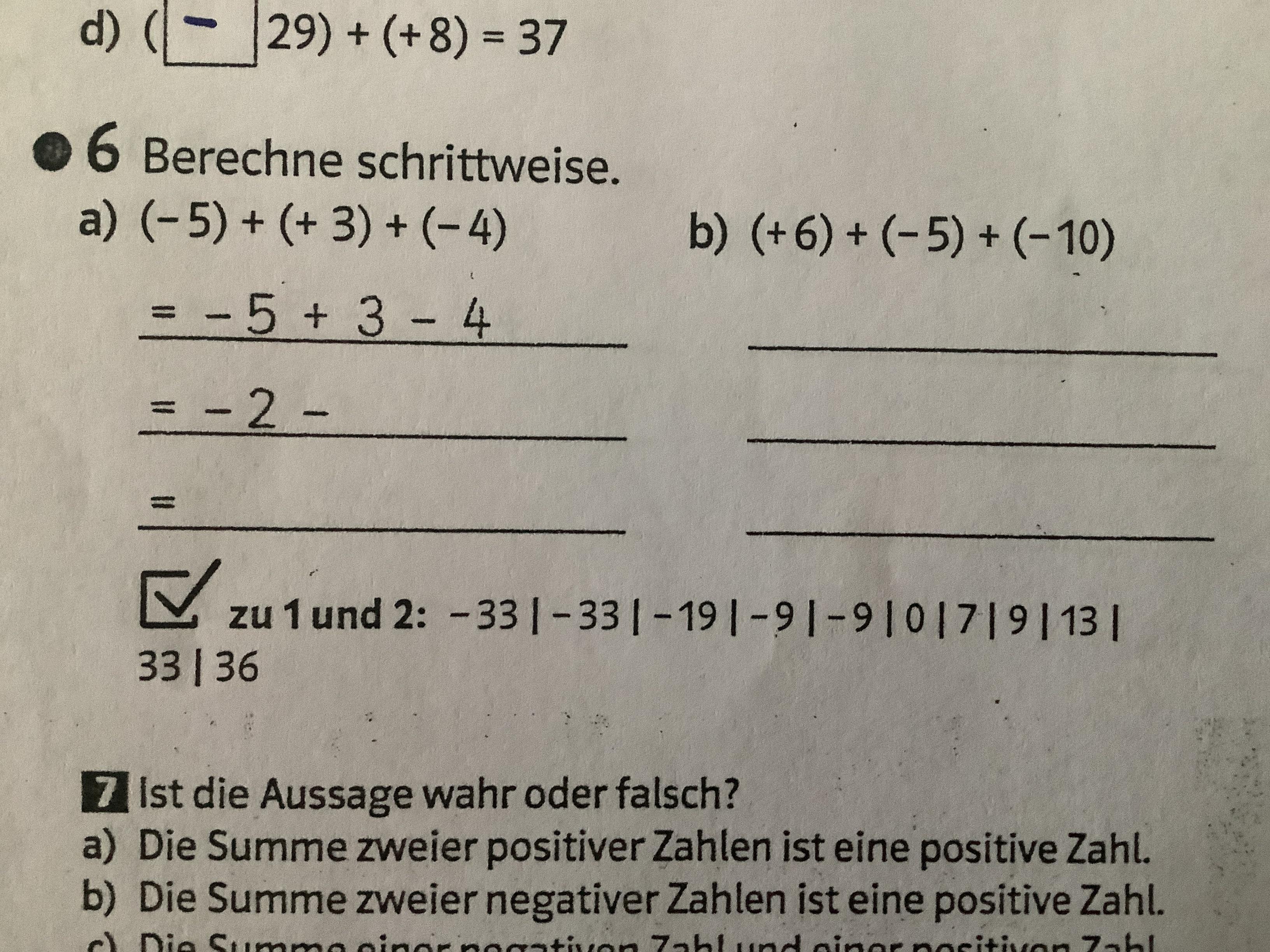 а) - 5 + ( + 3) + ( - 4) = - 2 - 4 = 6