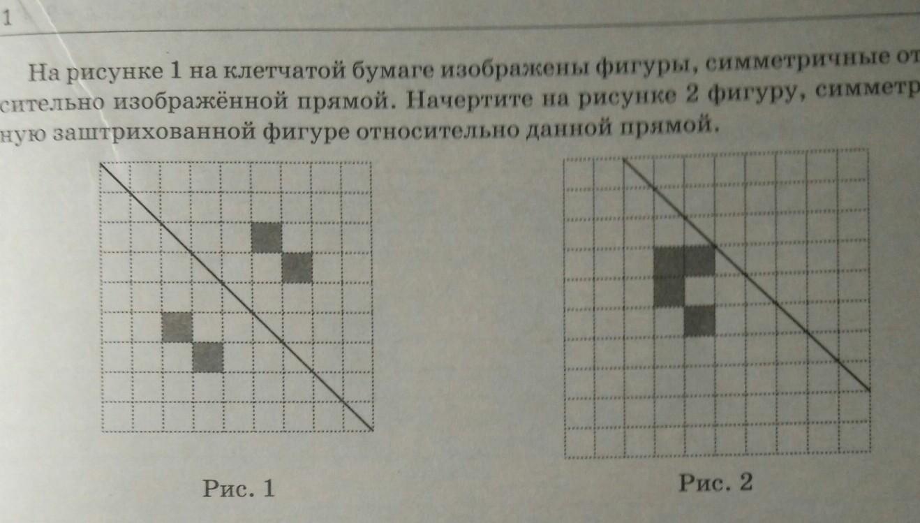 На рисунке 1 на клеточной бумаге изображены фигуры, симметричные относительно изображенной прямой.