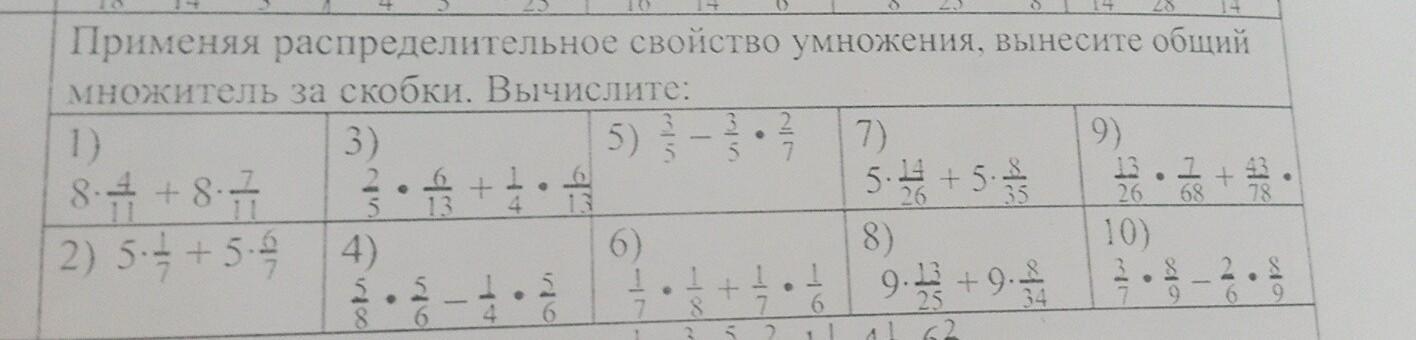 Применив распределительное свойство умножения, представьте числитель обыкновенной дроби в виде произведения, а затем сократите обыкновенные дроби (320 - 321) : •.
