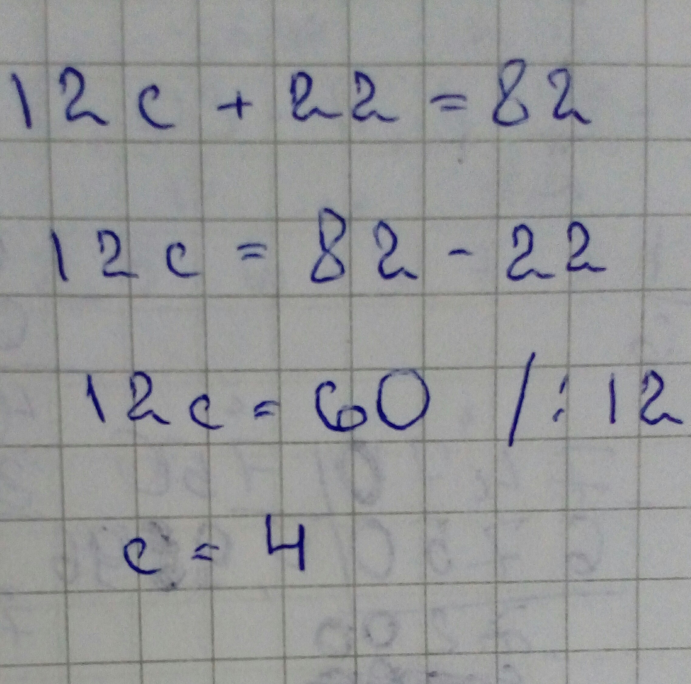 Помогите решить пожалуйста пример и объясните как решать 12с + 22 = 82.