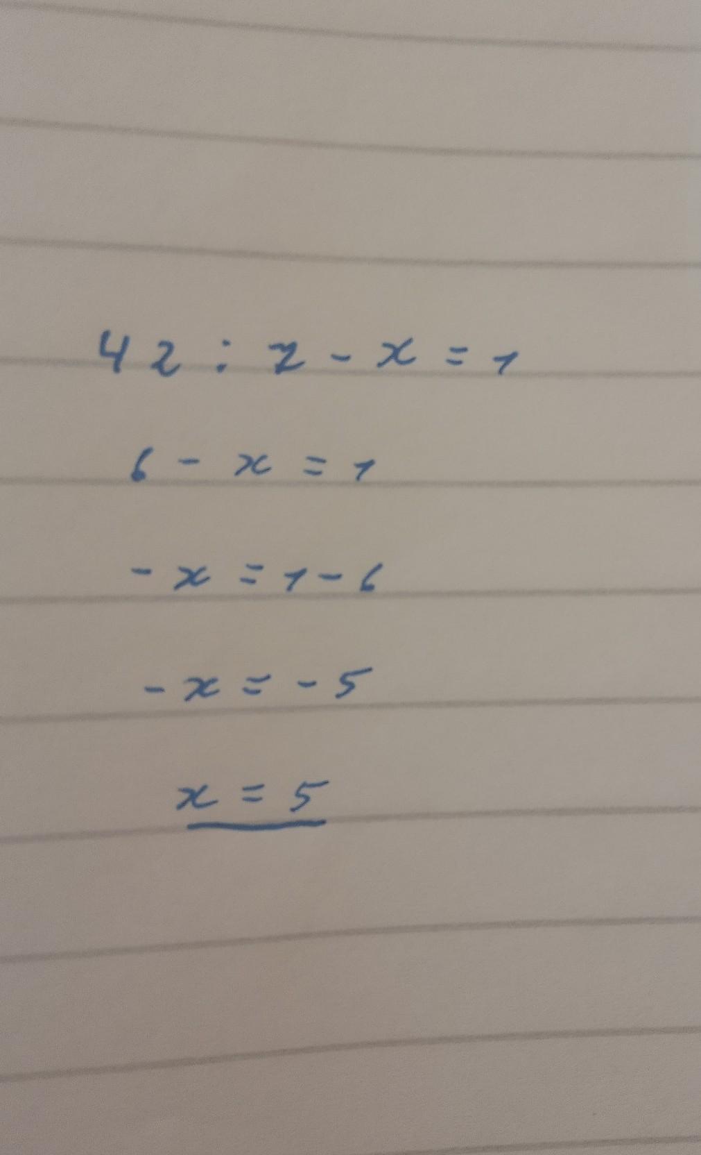 42 : 7 - x = 1 прошу подскажите пожалуйста.
