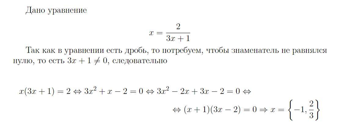 Вы находитесь на странице вопроса Реши уравнение х = 2 / 3х + 1? из категории Математика. Уровень сложности вопроса рассчитан на учащихся 5 - 9 классов. На странице можно узнать правильный ответ, сверить его со своим вариантом и обсудить возможные версии с другими пользователями сайта посредством обратной связи. Если ответ вызывает сомнения или покажется вам неполным, для проверки найдите ответы на аналогичные вопросы по теме в этой же категории, или создайте новый вопрос, используя ключевые слова: введите вопрос в поисковую строку, нажав кнопку в верхней части страницы.