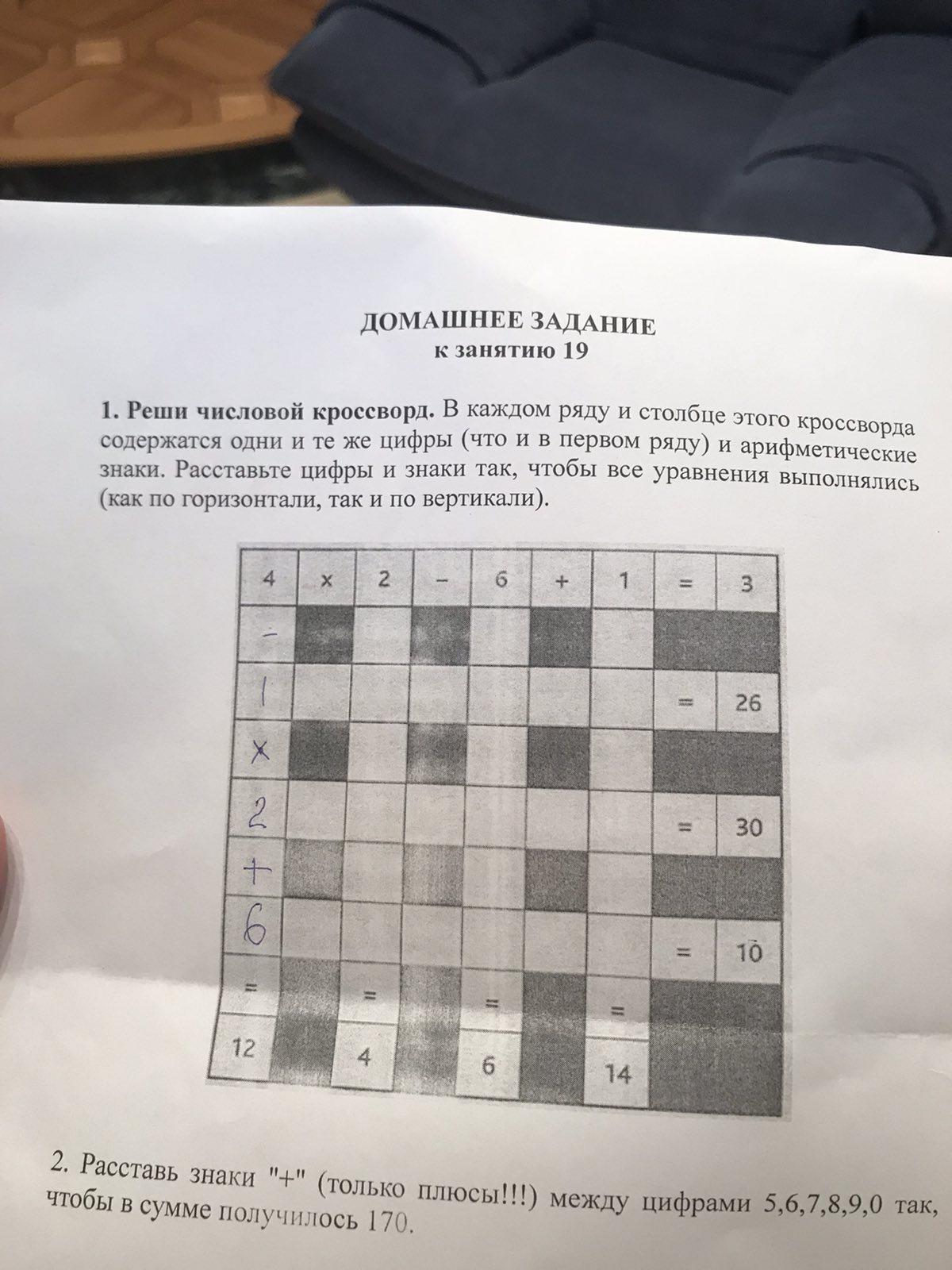 Сделать кроссворд на тему плюс минус умножить разделить?